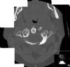 | | Fracture through the left anterior and posterior arches of the atlas with some lateral displacement of the left lateral mass. Axial CT 2. Dusch Atkinson - 31/10/2009 |